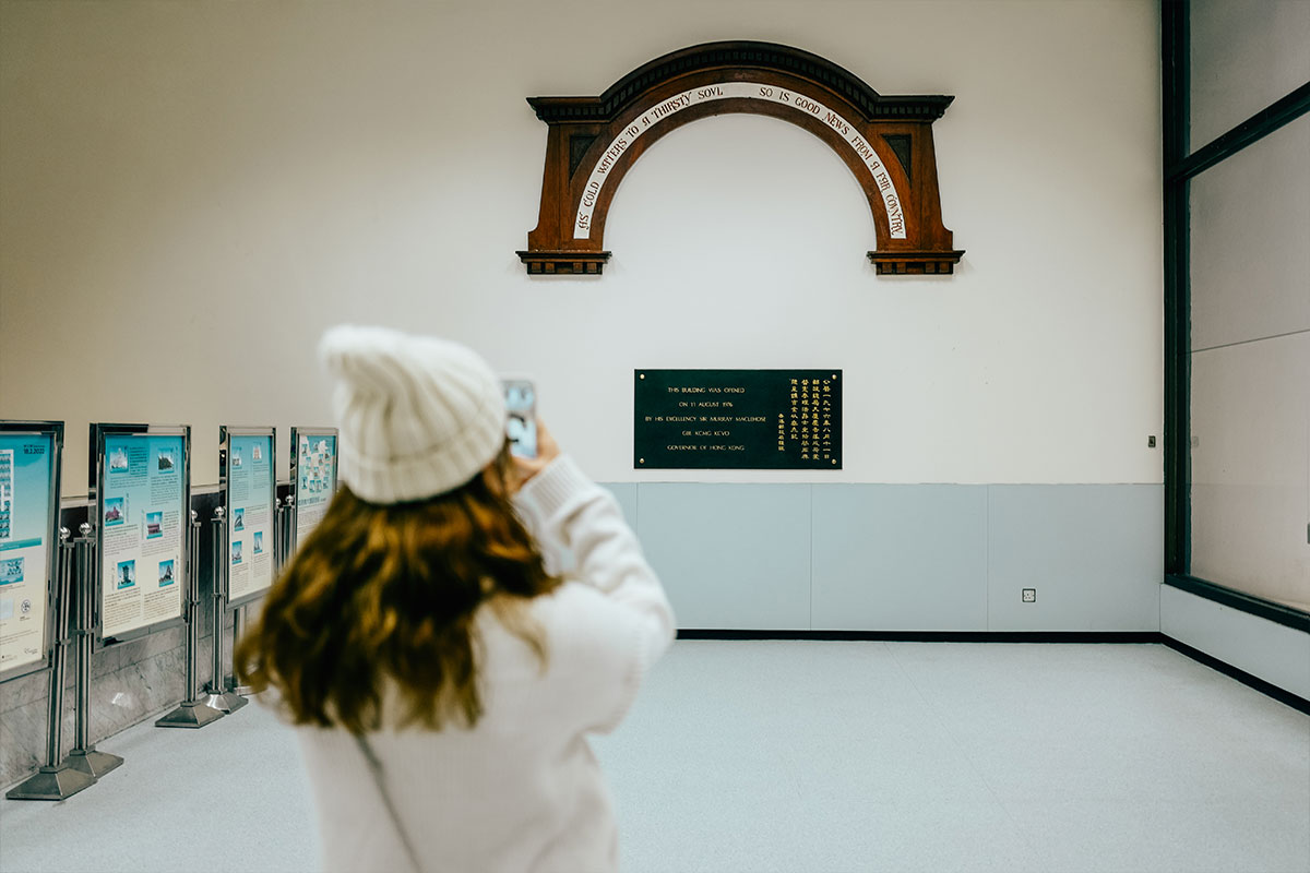 總局內的牆上,掛上了木製拱形的牌匾,是從第三代郵政總局保留的部件,上面寫有一段出自聖經的箴言,「As cold waters to a thirsty soul, So is good news from a far country」。(有好消息從遠方來,就如拿涼水給口渴的人喝。)