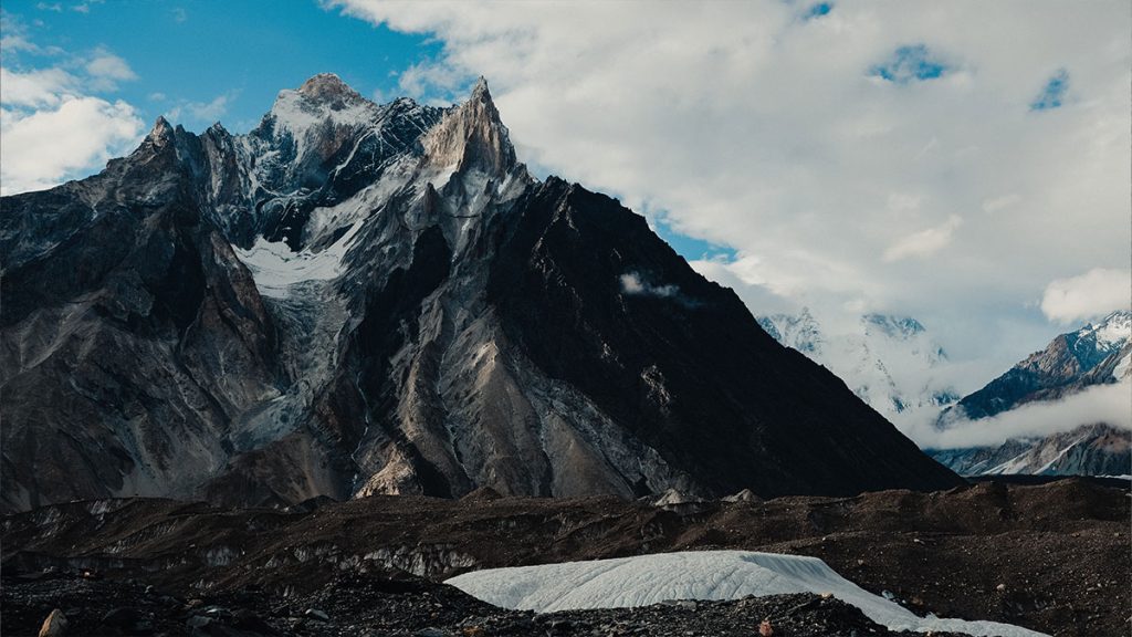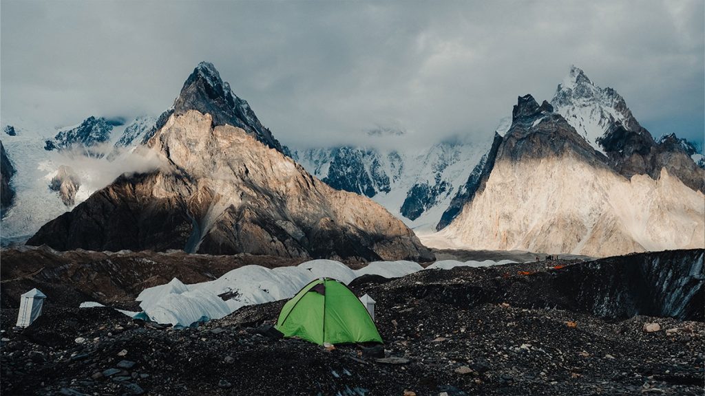 到達海拔4000米後,我們更須在冰川行走,冰川下盡是不同顏色的碎石,那些石頭都有幾十萬年歷史,各自背負著這些年來的變化與沉寂,也目睹不少登山者的腳步。冰川天氣變幻莫測,我們甚至聽到遠方雪崩的聲音。走著走著,旁邊的雪山不知從何時開始越來越高、越來越近。到達Concordia(能看見K2的營地)那一刻,好比完成了重大使命,忍不住大喊「阿媽我得咗」。K2夾在兩座山之間,被重重雲霧遮掩,開初只看得見山腳至山腰的部分,直至日落時分,營地突然多了一重金黃色,雲霧在陽光照射下散去一點,總算見到K2山頂那個小小的三角形。K2穿過雲層,沉默地站立在眼前,危峰兀立,我們在它面前只覺渺小。