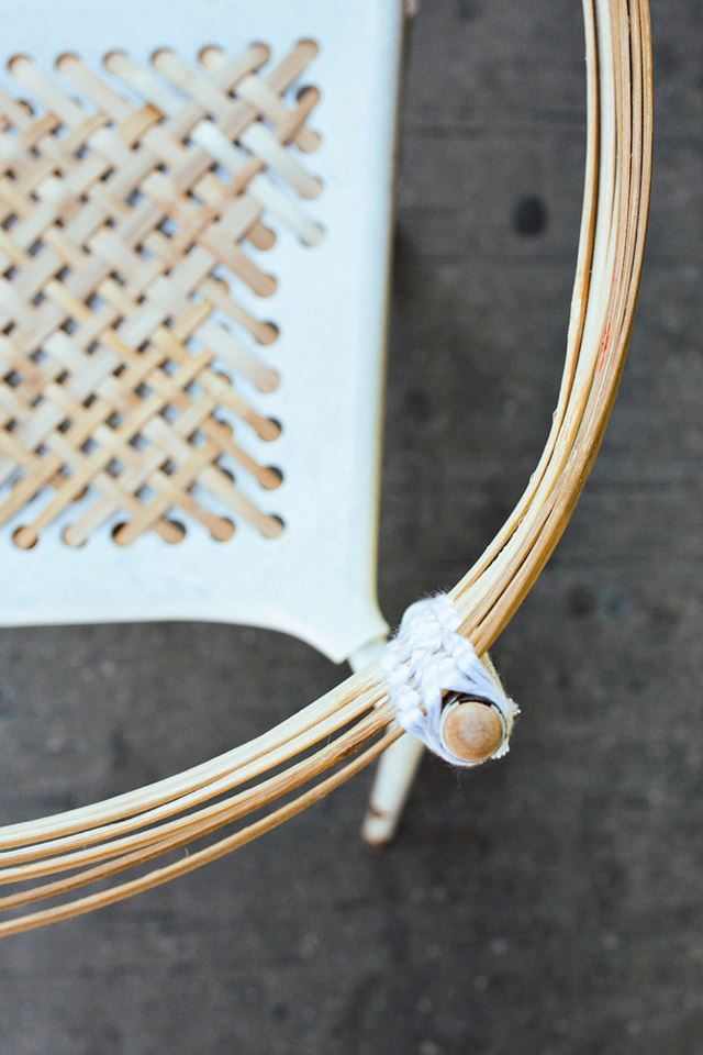 Kay用開竹器把一根根的舊竹分解成竹篾,然後為爛櫈加上靠背。展覽結束後,舊椅回到街上給阿伯使用。