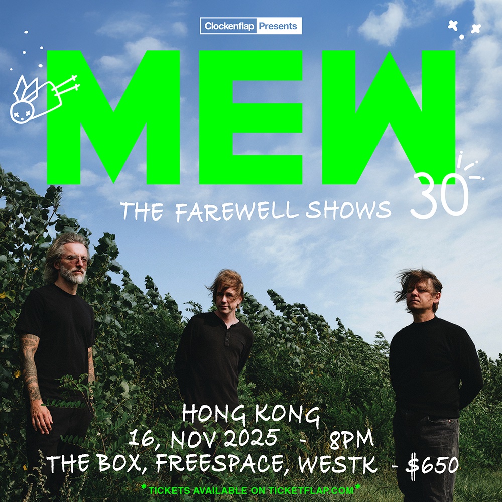 有聽開 Indie prog rock的人可能也聽過丹麥獨立搖滾樂隊 Mew的歌。1995年出道的Mew樂隊歌曲以前衛搖滾風見稱,在2003年發行的《Frengers》專輯獲得當年Danish Music Critics Award的「年度最佳專輯」和「年度最佳樂團」,也是他們加入SONY後首隻在國際發行的唱片。碟名Frengers結合了Friend 和Stranger二字,意思是不是朋友也不算是陌生人,正好道中當時人們的疏離關係。兩年後發行的《And The Glass Handed Kites》又在丹麥音樂頒獎禮中奪得多項大獎,奠定他們在歐洲,甚至是亞洲的樂壇地位。Mew過往分別在2013年和2017年時曾來港演出。來到樂隊成立30周年,主唱Jonas決定離隊,三人選擇以巡迴演唱會的方式為Mew劃下完美的句號,並邀請所有樂迷和喜歡Indie的人到現場親身體驗他們的last rock。