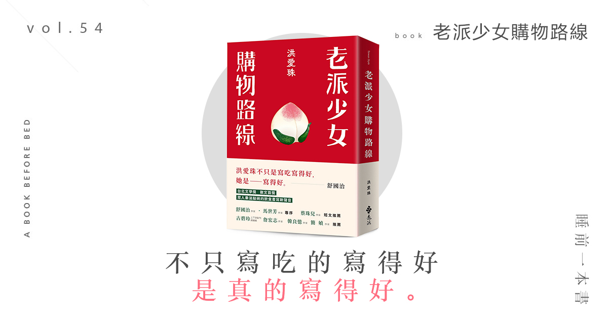 捧起洪愛珠的《老派少女購物路線》,我以為又是什麼台灣的小清新文青小店介紹,又看見舒國治的推薦:洪愛珠不只是寫吃寫得好,她是—寫得好。嘩!很高的評價喲。舒國治在序言寫道:「想起一事,早知她寫得好,四年前我打算停寫高鐵小吃專欄,編輯問:可否推薦幾位年輕的寫吃的人,若早識她筆健如些,便能舉薦她也!」