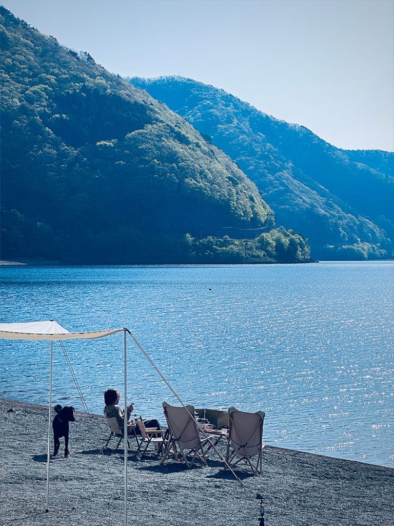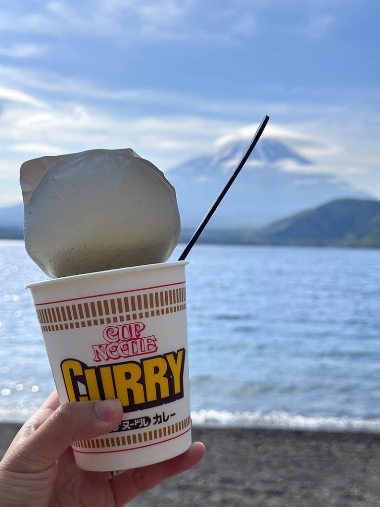 欣賞富士山可說有 100 種方法,其中一種我們選擇了露營。幾年前看了動畫《搖曳露營》,深深被第一集驚艷到,從此就不能自拔的看下去。第一集女主角自己 solo camp 去的露營場,正對著湖面生火、吃杯麵的場景,從此念念不忘,一直跟自己說,有機會一定要來一趟富士山的露營。終於,這年在夏天來臨之前,我們來到了在腦中想像了很多次的地方,一來到,果然是偌大的富士山在迎接我們,夢中的場景終於實現,那種感覺太美好了!