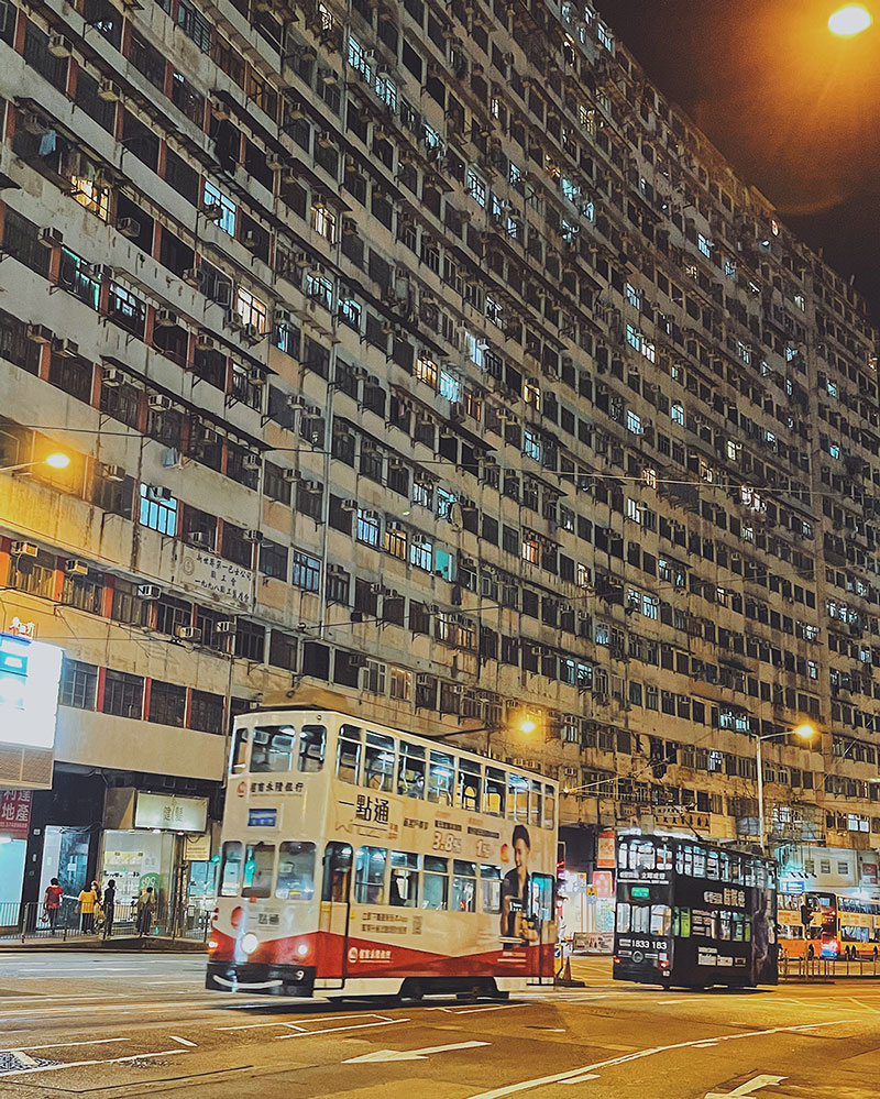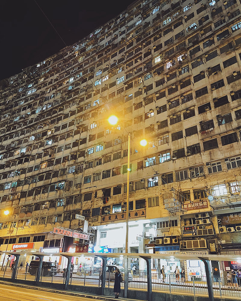 重新上車出發,經過熱鬧的銅鑼灣、北角,來到柏架山道,甫下車就能看見被大家稱為怪獸大廈的海山樓,因超密集的特點及之前電影《變形金剛》在此取景之後,便吸引了很多人在屋苑內打卡,打擾到該處住戶安寧。所以我們在對面街道遠觀即可。即使不身處其中,看著整片密麻麻的窗戶,也能感受到那股歷史感。