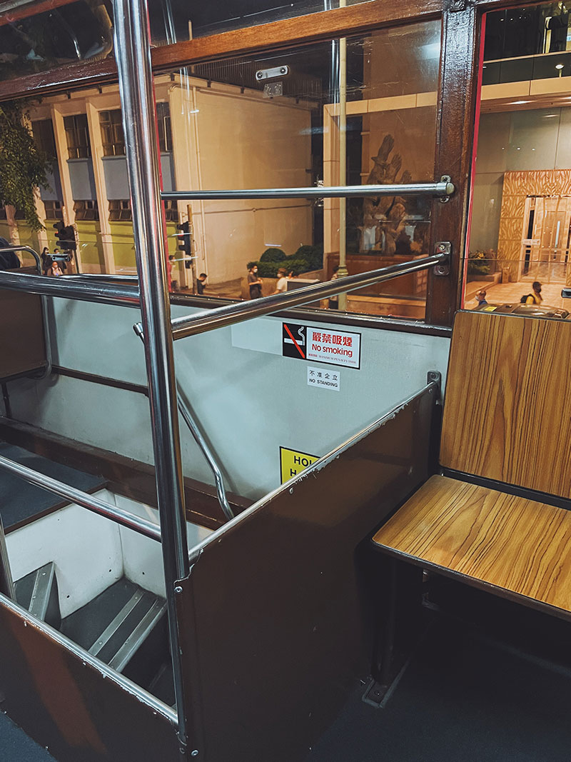你知道嗎?原來電車自1904年起便穿梭港島兩邊行走,從一開始的單層,到後來的無蓋上層,到現在可見的密封式雙層電車已經歷了第7代,現在的電車雖然樣子還保有懷舊風貌,但也隨著科技進步加入了實時定位系統,這次我們選擇了東行往筲箕灣的列車出發。