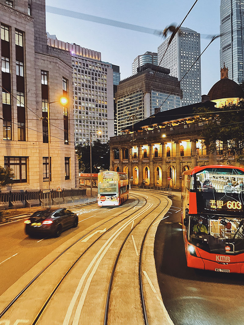 看著電車在身旁徐徐經過,「都沒有好好的遊過電車河」的想法促成了這次小旅程,踏上電車,好像是有目的地想了幾個停頓點上車、下車,但整個重點還是落在了坐電車的過程。半開得剛好的窗邊,徐疾有致的車速,讓我們能細看港島東、西歷史面貌