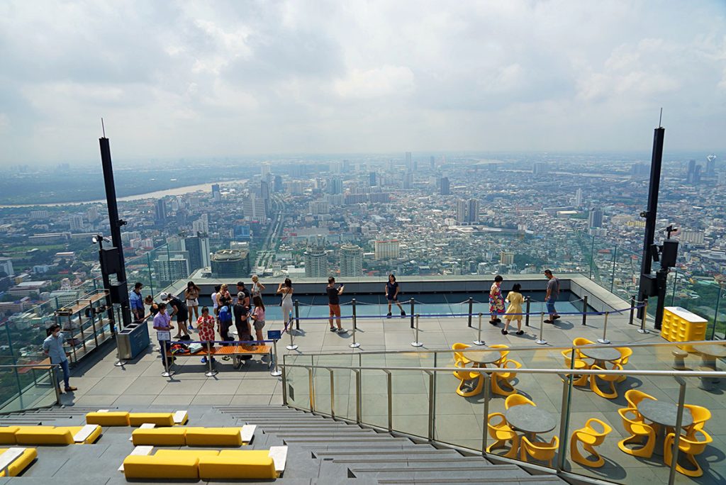 美食、夜市、按摩和天台酒吧,這些都是曼谷旅遊的代名詞,位於市中心Silom和Sathorn商業區的摩天大樓King Power Mahanakhon開業後,這座外型科幻的大廈曾有曼谷最高的銜頭,全玻璃幕牆配上如馬賽克的不規則設計,頂層觀景台King Power Mahanakhon SkyWalk,成為當地地標及熱門旅遊景點。