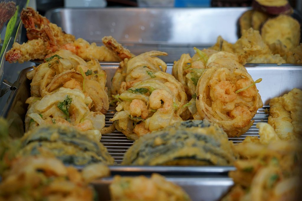 砂町銀座沒有米芝蓮壽司、預約困難店,以銅板美食作招徠,就像傳統緣日的屋台,人們可以邊行邊吃,享受日本罕有的掃街樂趣。天婦羅名店「天兵」有數十年歷史,以家庭式經營,年邁的店主媽媽,在廚房翻著油炸的食材,香氣飄至街上角落。眼前一件件炸物叫人垂涎欲滴,每件才一百多日圓,是親民的好滋味。