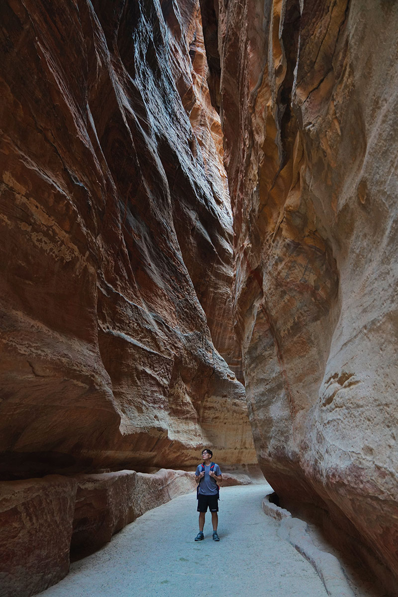 第一次對佩特拉古城有印象,是數年前在《國家地理頻道》看過一集關於它的歷史介紹,從此對這座千年歷史的玫瑰古城一見鍾情,有著一種解釋不能的情意結。然後開始著迷地做資料搜集,才知道原來它是世界新七大奇蹟之一,座落在約旦,同時被《Lonely Planet》選為2019年十大最佳旅行國家之一,「是個擁有著壯麗景觀、豐富人文遺產的異域。」為了讓這次旅程不至於走馬看花,我們特意在佩特拉停留了三日兩夜,走遍這個昔日繁華古城的每個角落。
