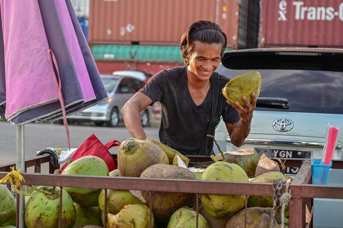 緬甸的地道美食同樣風味十足,街頭到處都是流動的美食攤檔。早上,賣魚湯粉(Mohinga)的小販早就熬好以鮮魚、芭蕉樹芯、豆粉、魚露、檸檬、香茅等煮成的濃郁魚湯,放在保溫的大鐵桶裏,當飢腸轆轆的客人點上一碗,小販便在米粉上淋上熱湯,配上炸豆餅,製成一碗濃香撲鼻的早餐。而緬甸人最愛吃的下午茶,非茶葉沙律(La Phet Thoke)莫屬。它以發酵茶葉混合番茄、魚乾、花生、炸蒜和炸豆等材料製成,鹹香中帶點酸甜,風味尤其獨特。黃昏時分,賣芒果、菠蘿與椰青的小販紛紛出沒,熱鬧非常;榴槤車也緩緩地駛到了鬧市,受歡迎的程度好比香港的雪糕車。小販們手起刀落,熟練地剝掉各種水果的果殼與果皮,讓大街都瀰漫着香甜的果香。那種專屬緬甸的氣味,至今我依然難以忘懷。