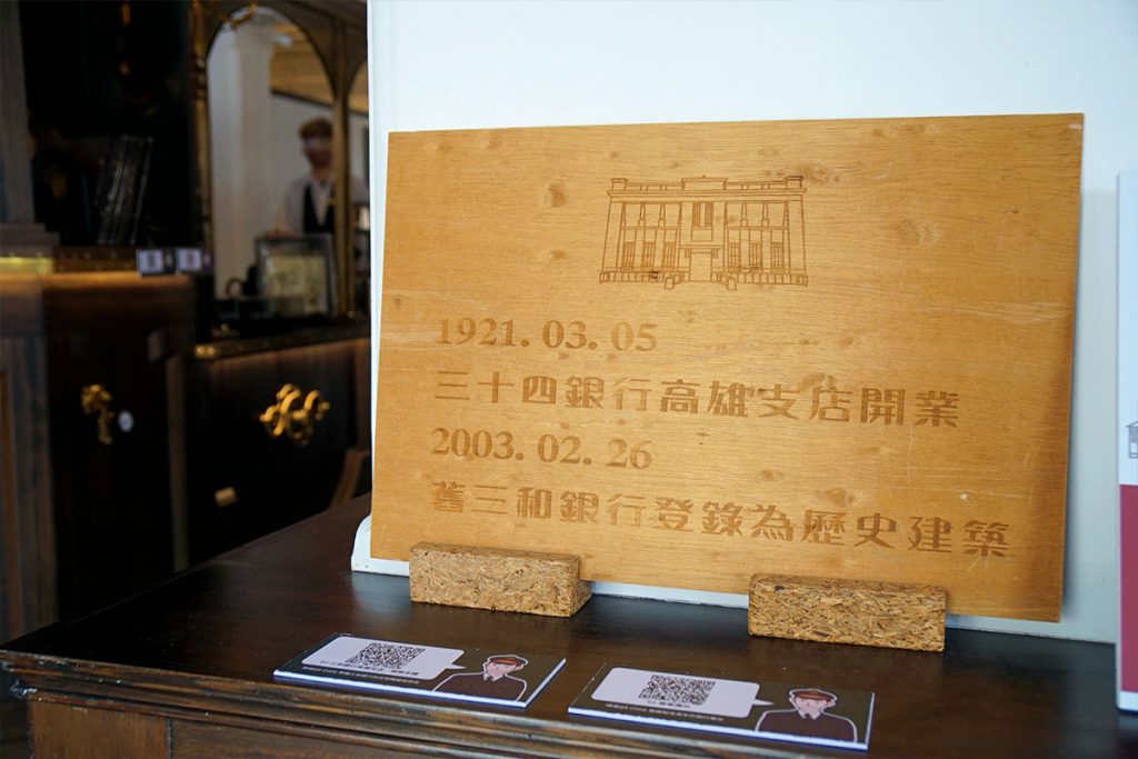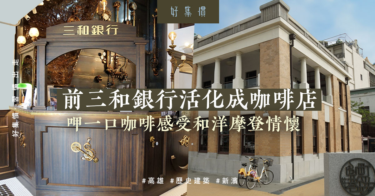 舊三和銀行華麗轉生成咖啡店,帶出大正浪漫的和洋摩登的懷舊日治主題。銀行櫃枱變成咖啡吧,還保留了百年金庫,厚厚的鐵門後,有一部座地的古典冰滴咖啡儀器,神聖地將咖啡液一點一滴地萃取,精細地製作成一杯金庫冰滴咖啡,是這兒獨一無二的韻味。