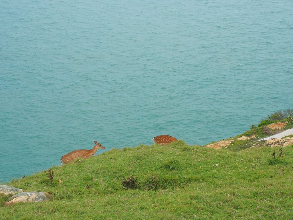 不知是否因為遊客過少,每年就只有5至10月,每天有一至兩班船,從馬祖兩大島嶼南竿和北竿出發開往大坵島,船程不過30分鐘。萬一當天風浪超過八級、報名人數未達10人,便不能成行。「見到梅花鹿不要興奮大叫,後面的人會甚麼也看不到啊!」駕船的大哥在後面叫道。70年代的大坵島曾熱鬧一時,雖然不過是45戶人家,共280個島民。不過自從1990年最後一個漁民帶着家當和家人離島,大坵就從此變成無人之境。如今島上以過百隻野放的梅花鹿聞名,不過由於牠們皆為天生天養,杳無人煙的島上又不設購買飼料的小攤檔,所以牠們都保留了膽細細、見人就閃的天性。但見這些漂亮的動物三五成群,在七十多米高的沿崖峭壁上吃草,放眼是一片吃不完的翠綠草被,還有一望無際、捲着白浪蔚藍大海,我認為比去日本奈良餵鹿更有治瘉之效。島上無馬路,環島行一圈約一小時便完成,當然未計睇鹿影鹿,以及本人屢敗屢戰要走入鹿群中拍照的時間。沿途我跟同船的台灣人聊天,原來十個有九個都跟我一樣,因馬祖民宿老闆介紹而來,「我們都沒聽過『大坵島』呀,原來這些離島中還有這樣一個世外桃園!」一個台灣嬸嬸笑得眼也瞇成一線地說道。