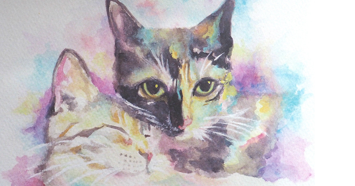 佳貝喜歡水彩,筆下的貓眼神充滿靈性,都是跟她和媽媽朝夕相對過的生命。