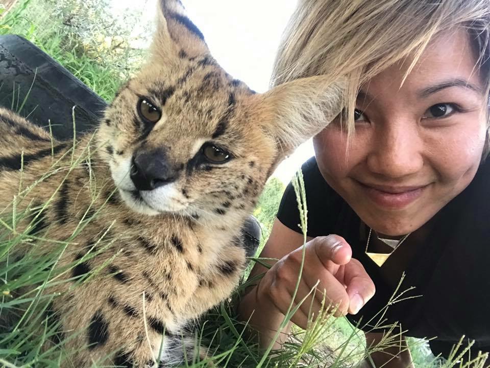 跟她成為朋友,是因想聽她分享去年她獨個兒遠赴南非Kimberley一個月,在一所貓科類動物收容當義工的換宿趣事。收容所名Felidae Centre,成立於2010年,由一家四口打理,非牟利的它一直靠著捐款,以及自資運作。Emily說收容所的第一代住客是5隻從當地盛行的打獵場內救出的獅子,「當地十分流行打獵樂園,遊人可入內射殺園內職員刻意安排的野生動物。曾經有一隻小獅來到收容所時,半邊臉是爛掉的。」Emily感概道。狩獵在南非是一門營業額每年逼近上億美元的龐大經濟之柱,該國只禁止在國立公園和保護區內狩獵,但業界只要持有狩獵許可証就能合法經營打獵場,觀光客在嚮導帶領下用槍射殺動物。被射殺的獵物可立即在現場加工,讓遊客把「戰利品」帶回家。