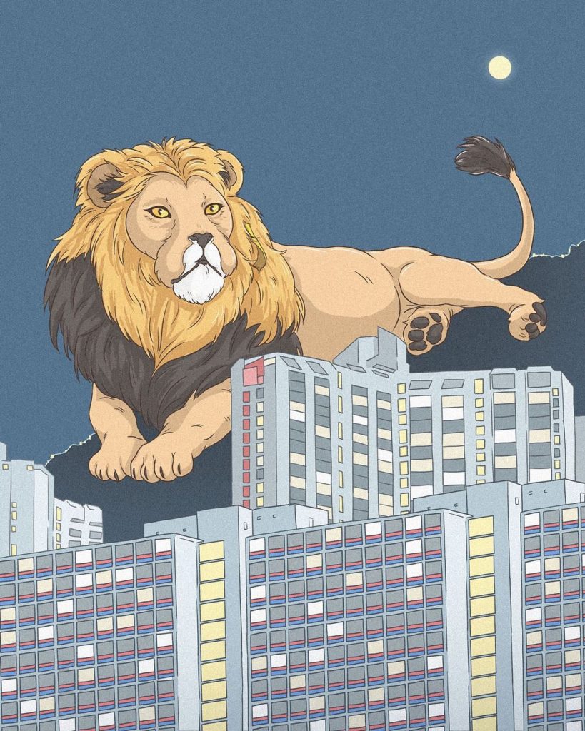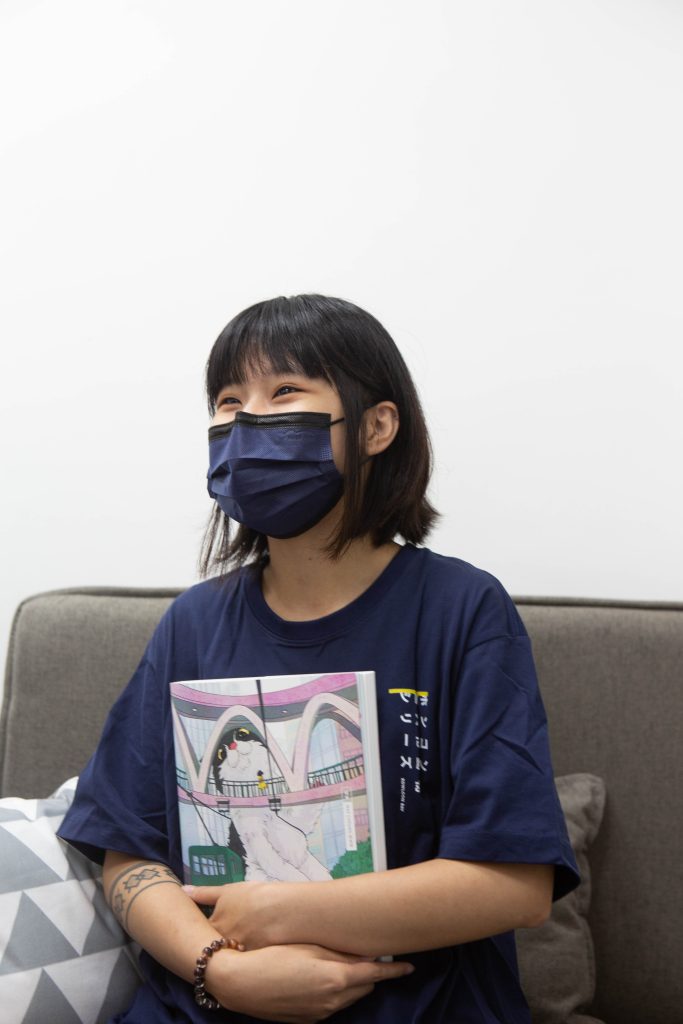 歡迎來到Maf Cheung毛毛球筆下的奇異世界!在這裡你會看到如同宮崎駿創作的《借東西的小矮人亞莉亞蒂》,這裡的主角是日常微小的動物,人類反而變成小矮人般,看得令人膽戰心驚。「我是宮崎駿的超級忠粉,還記得第一套看的是《風之谷》,不論環保主題還是腐海中人造巨蟲都很出色!」眼前說得興奮雀躍的Maf,雖然個子小小說話柔和,愛穿簡單oversize黑色上衣,但其筆下世界絕對是璀璨無比而富有張力。去年初她帶着寵物狗探望朋友和朋友的貓咪,誰知貓咪Eevee在與狗狗捉迷藏時,偷偷蜷縮在椅子下兼擺出一個得戚又可愛的表情,啟發她畫出第一張巨大化動物的畫作,一夜爆紅。