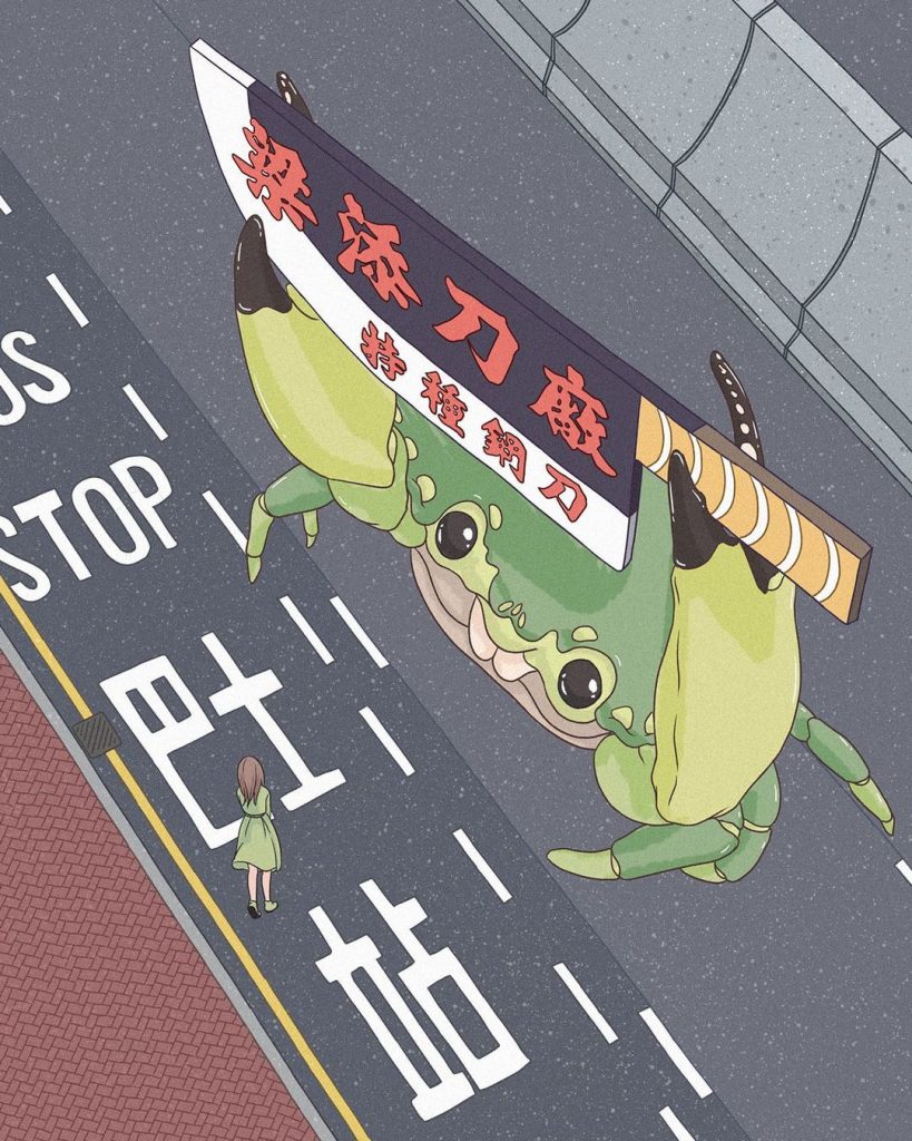 一切來得始料不及。Maf分享自中二起便開始迷上畫畫,大學讀書讀動畫,畢業後從事過網站、平面設計等,ACG動漫風畫作一直只是業餘的繪畫題材,「當你需要面對一個客人的時候,創作空間就會變得很有限,平面設計商業味更重,插畫一直是業餘性質,沒有想過最後變成自己標誌性的作品系列。」疫情下香港各行各業都踏入一段空檔期,她亦驟然失業,只能以接freelance為生,但她沒有放棄,而是把握當下去反思在創作上還有甚麼可能性。畫作取得成功第一步後,她開始上網大量搜尋各式各樣的打卡熱點、香港地標、美景等等,「感謝發達的網絡,平時會藉google map看地圖,邊學邊畫,簡直是心靈上行勻香港!」