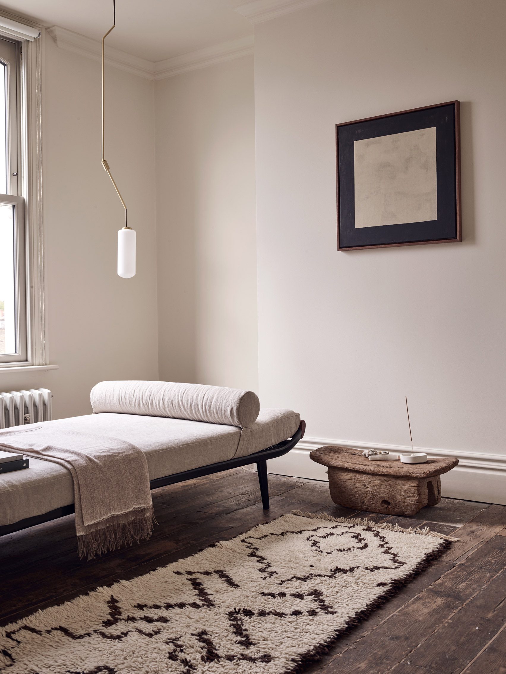 看這棟位於倫敦的房子便明白了。當中明顯粗糙的木桌子,讓人想到傳統的日本木製品;但地上的蓬鬆地毯加上幾何圖案又別有北歐現代感。兩者不單在色調上營造出層次感,而且在質地上也造成有趣的火花。