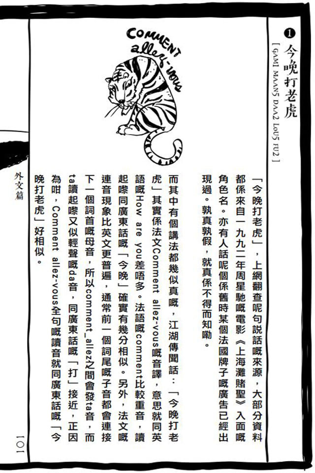 或許大家會記得,曾在周星馳的《上海灘賭聖》聽過。有說它是來自法文 Comment allez-vous 的音譯,意思是:你好嗎?疫情讓城市變得疏離,電話或訊息上對身邊人的一句問候,更顯得重要。今晚打老虎?