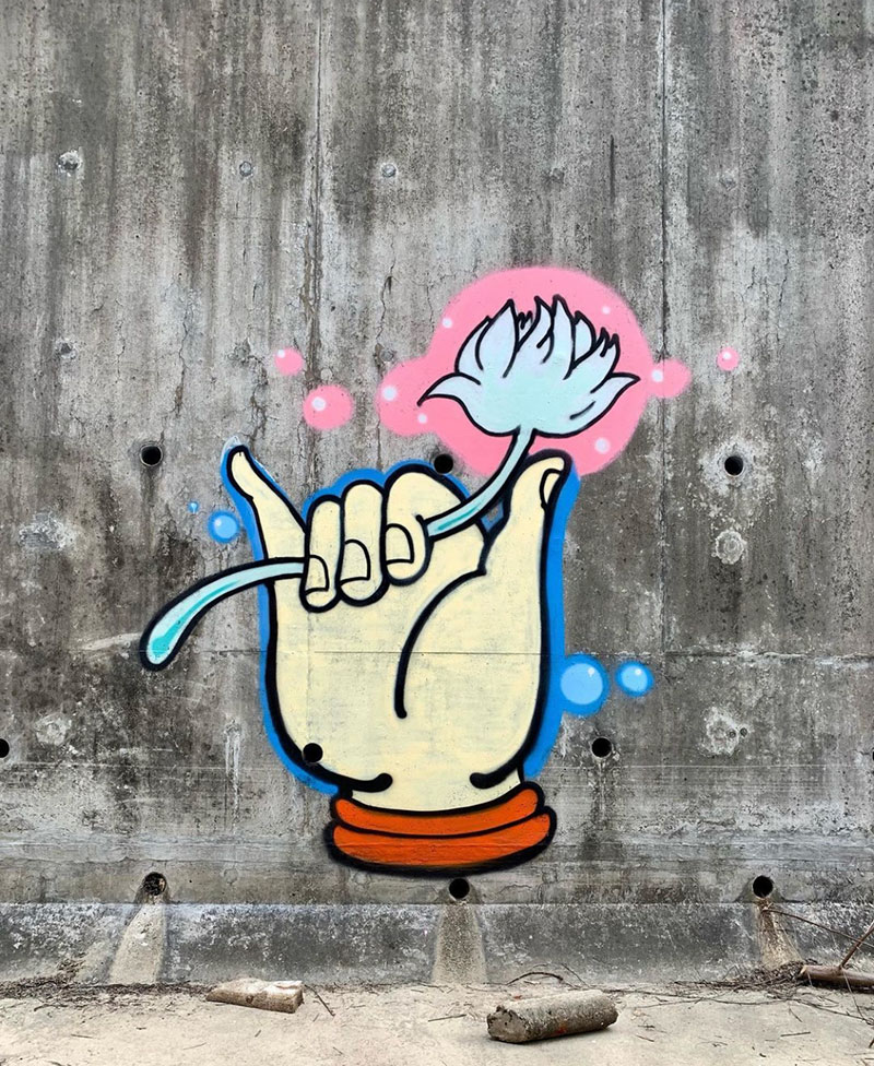社會運動之後,他開始閱讀佛經、冥想、茹素,借佛學梳理自己當時不滿、憤怒的情緒, 適逢疫情初冒,令他對「無常」感受更深。他說:「很多人說冥想很難,但如果連呼吸都做不到,就代表我們連自我都未能控制。當頭腦被自己困住,大腦有很多雜音,令你遇見不到真正的自己。」疫情的社會情緒就正正反映人對未來未知的恐懼,也再人們發現其實生命可以短暫,無人擔保你能否活得過明天。他認為人與人之間的傷害、偏執正是缺少對這「無常」的覺察,於是自少喜歡畫畫的他,意念一轉,想到不如試試用塗鴉去宣揚更多佛法。