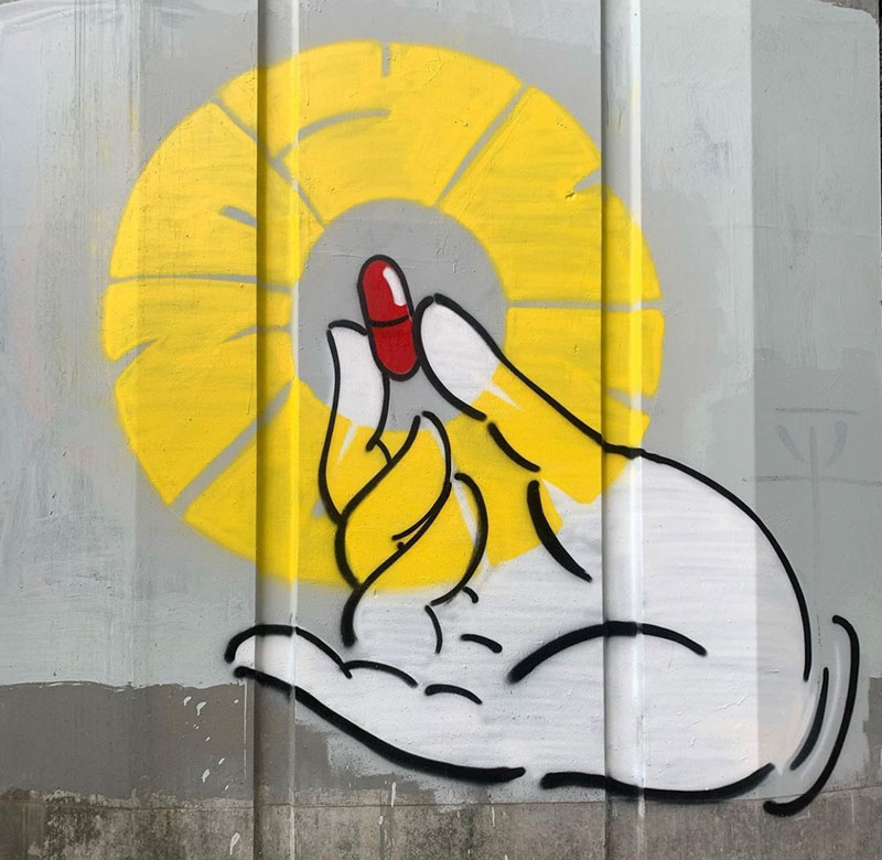 疫情期間他和很多香港人一樣面臨失業,於是轉行兼職做外賣員,起初他自己甚至身邊的人都看不起「外賣仔」一職,但因為佛學令他學懂轉念,「一切都是過程,學習去感受生活,做運動、看看藍天、流流汗,一切都是剛剛好。」他不再著眼辛苦,而是看到背後另一種的滿足和快樂,如同他最喜歡的塗鴉佛頭icon般——慈祥、平和、滿足。「佛的臉孔已經代表了所有內在的哲理,覺察自己的念頭和心靈,接受生活的所有無常,包括生老病死。」於他,香港目前經歷由好轉壞的年代,但他反倒認為壞的時代才能孕育出好的人。他深信在最壞的時候更應行善,遂走到街頭噴漆電箱、後巷、牆壁等廣遍佛學種子。「對比起投入正統宗教,塗鴉是一種直接有效的方法去傳達理念,我希望在人的心中種下一粒菩提種子,提供一個機緣給人接觸到佛學。」