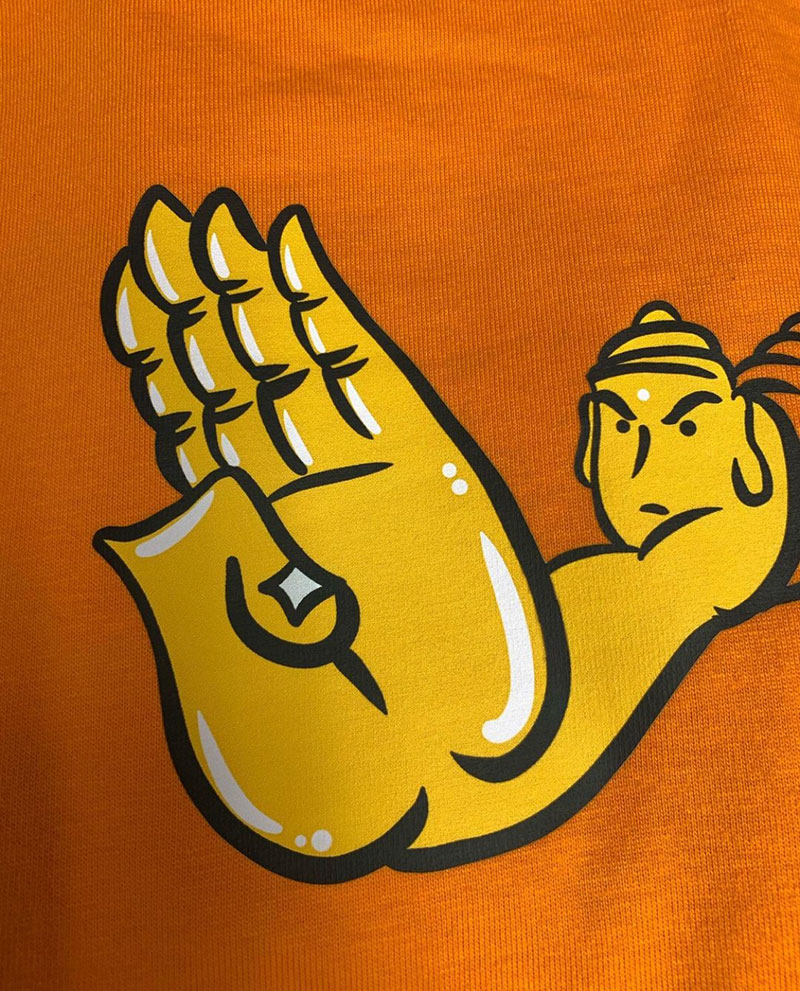 丁如雲由2019年開始深研佛學,是他「佛系」塗鴉的起點;T恤後方印上了寫上他一個塗鴉Icon——慈悲。