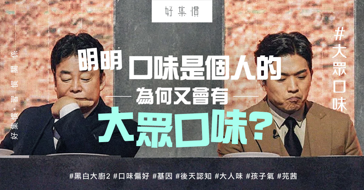 看《黑白大廚 2》時,最常聽到白種元和安成宰對菜式的評語是:「兩道菜也好吃,只是看個人口味而已。」其中最能印證這句話是在黑廚對白廚的團體賽中,包括白種元和安成宰內的一百位評審嘗過菜式後,二人同時選了黑廚的菜式,但最後白廚的菜式卻拿下超過六成的票以大比數勝出。在賽前訪問裡白廚師便說過因為評審有一百位,所以菜式取向要符合大眾口味。意味著口味雖屬個人喜好,但確實有一些特定的口味能合符大部人的喜好。