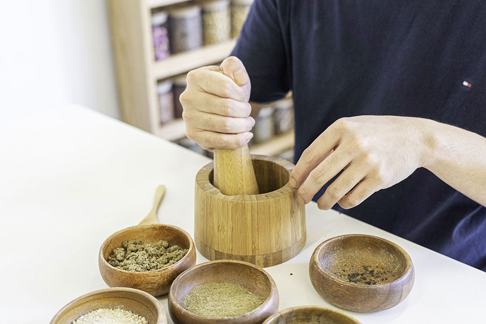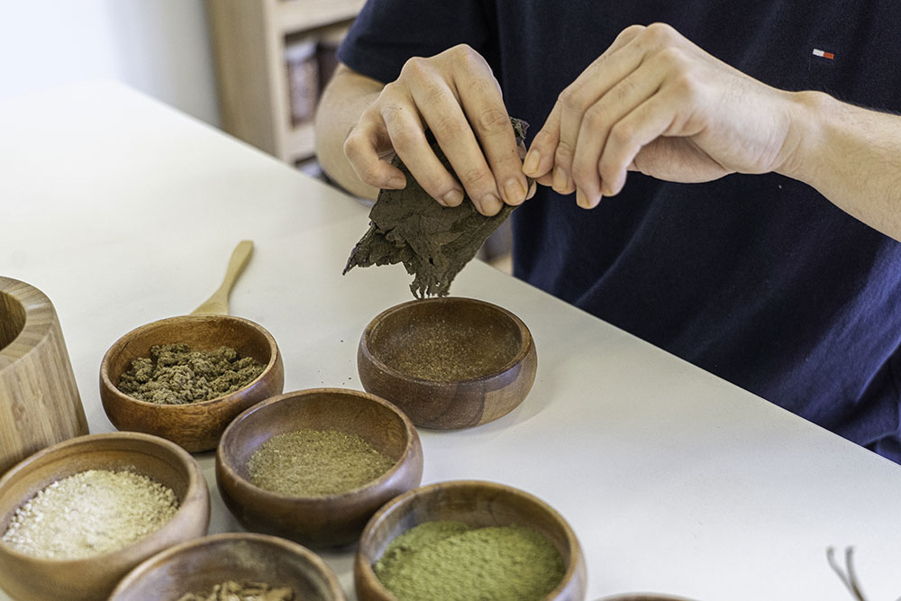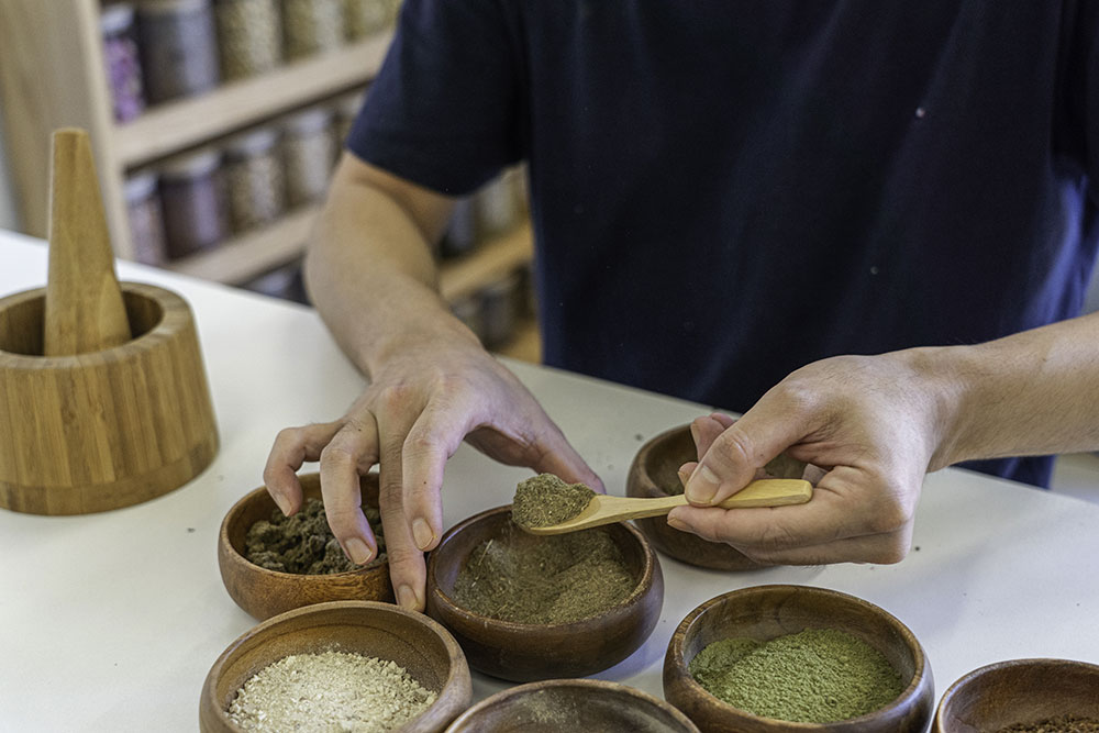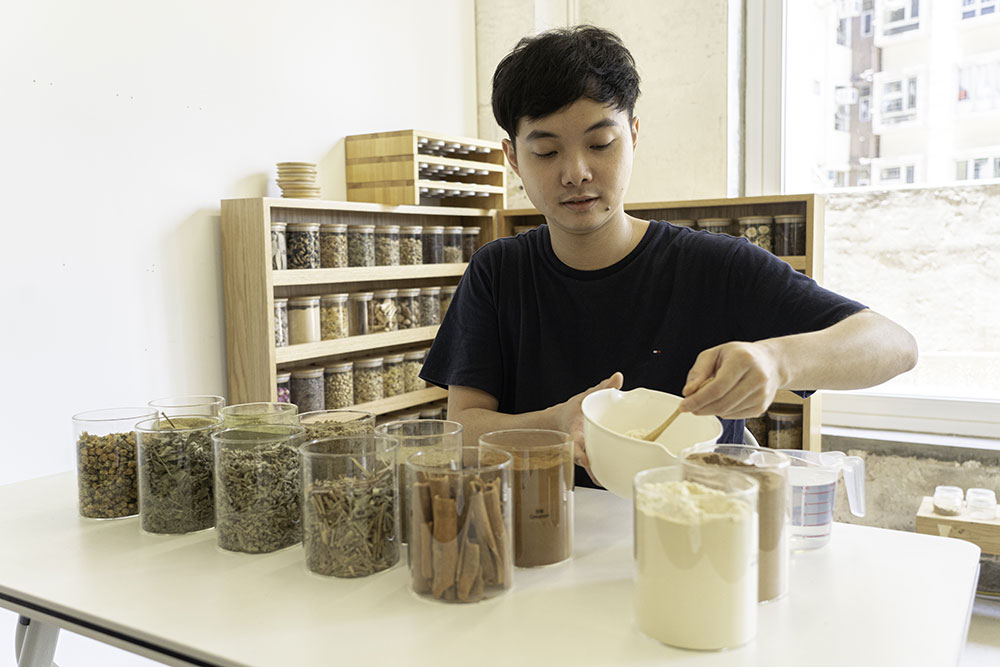 小時候我們家中點燃的那餅綠色、像繚繞線條般的蚊香,總教人懷念,但不說不知,原來竟含多種化學成分,「在雜貨店買到的普通蚊香,價錢雖然便宜,但裏面有大量化學成分,經常點燃對人體有害。」五年前創立 okapi Studio,專注鑽研以天然香料製香的鄭志堅 Max,踏入夏季經常舉辦工作坊,推廣既環保又健康的手工天然蚊香。站在放滿逾百種天然香料的木架前,Max拿起最常用來驅蚊的材料:艾草、香茅、薄荷,全都是可以放進口裏的香料。「再加上有助燃作用的松木粉,和有黏合作用的榆木粉,就是我所研發的天然蚊香所有成分了。」
