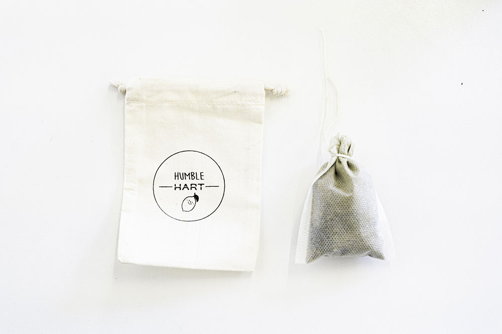 3.把紫蘇葉和其他艾草、香茅、薄荷等香料放進小袋之中,香料可隨心配搭,用繩繫緊