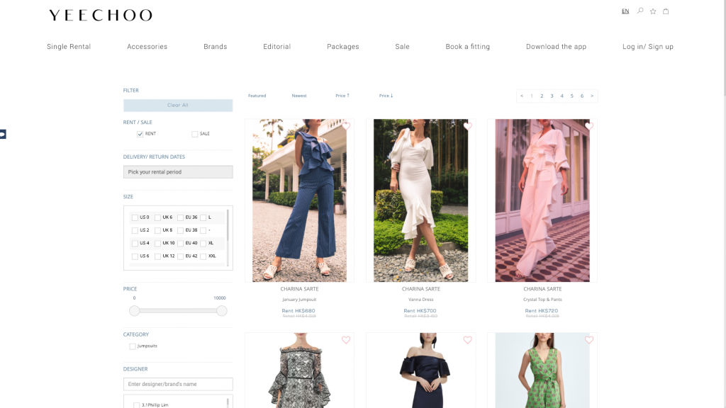 Yeechoo 可謂是亞洲租借時裝界的翹楚,目前已經由香港發展至上海和深圳。你可以從網站租用超過一千個時裝設計品牌的服飾,讓你不用買十年才穿一次的盛裝。除了晚裝之外,休閒的日間造型和飾物都一應俱全,而且有7天和14天租3-5件服飾的套餐組合。