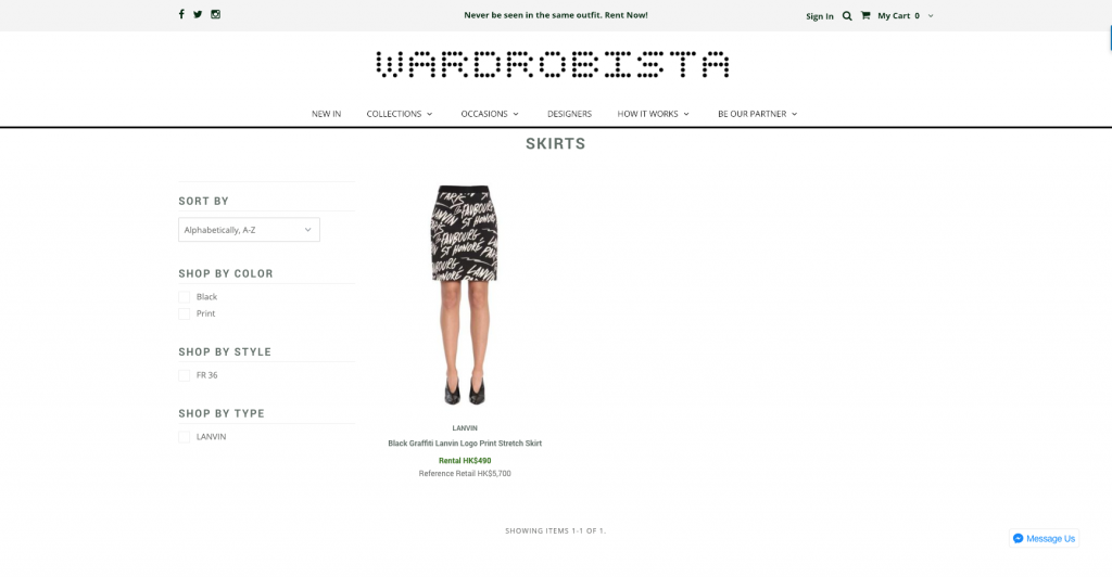 緊接 Yeechoo 的後起之秀,高舉租衫可以慳錢慳位的旗號,主要以晚裝、隆重場合適用的手袋為主,中價至貴價品牌俱備。除了可以隨時隨地上網租衫之外,Wardrobista 亦會每月舉辦 pop-up store,讓顧客親身瀏覽他們的服飾系列。