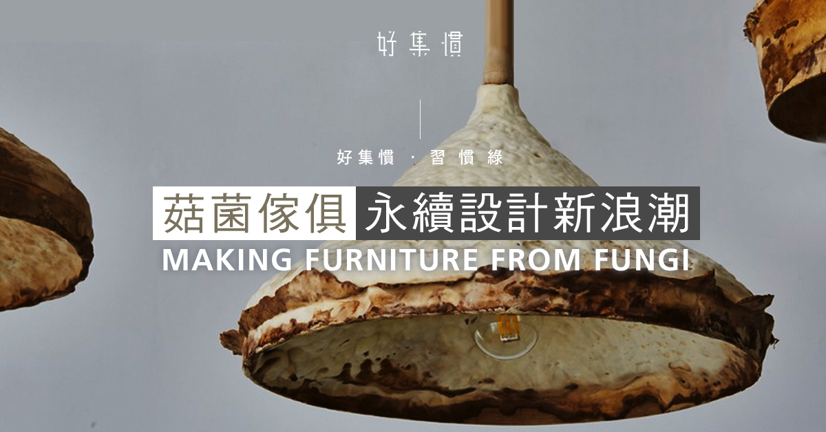 早前在環保雜貨店 Slowood 開幕之際,發現了幾張白白的椅子和燈飾。聽店主解釋,這些置於純素輕食區的傢俱都是團隊自家用菇菌製成,而且製造過程並不複離。在好奇心的促使下,繼續在網上研究一番,發現這種菇菌物料是永續設計的新浪潮,替代塑膠的潛力極高。