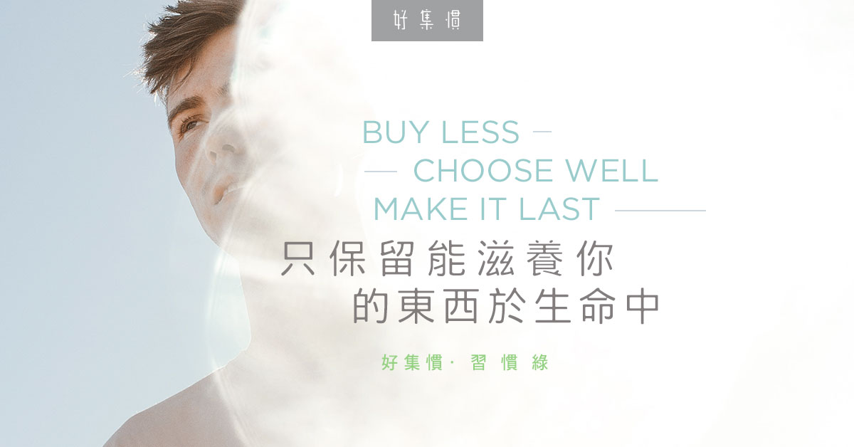 “Buy less. Choose well. Make it last.” 是非常關注環保議題的時裝設計師 Vivienne Westwood 的名言,談到環保好習慣,其實這句名言已經是答案。想要建立一個對地球更友善的生活方式,不需大灑金錢亦不需要立即添置一大堆環保產品。選擇由今天開始簡化自己的生活,了解自己更多、更認真地對待擁有的資源,不但能對地球更友善一點,更令自己生活得更輕鬆自在。