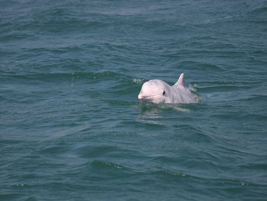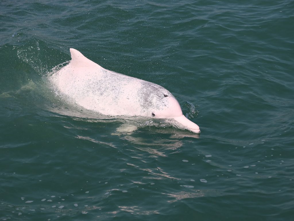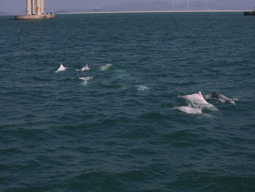 「江豚身形也比較細,也比較細膽、怕醜,一般都喜歡躲起來,不像中華白海豚般會躍出水面,而是會貼近海面躍動,所以比較難看見,每年大概 2 至 5 月這段時間會比較容易看到牠們的身影。」至於中華白海豚,由於個性比較活潑好奇,除了跳躍,有時還會探頭「裝下」船隻,比較容易看見,常見出沒點在大嶼山,一年四季都能看見,「海豚其實就像高年級的小朋友般,非常聰明。像我們出海,有時牠們會認得我們的船而游過來。」