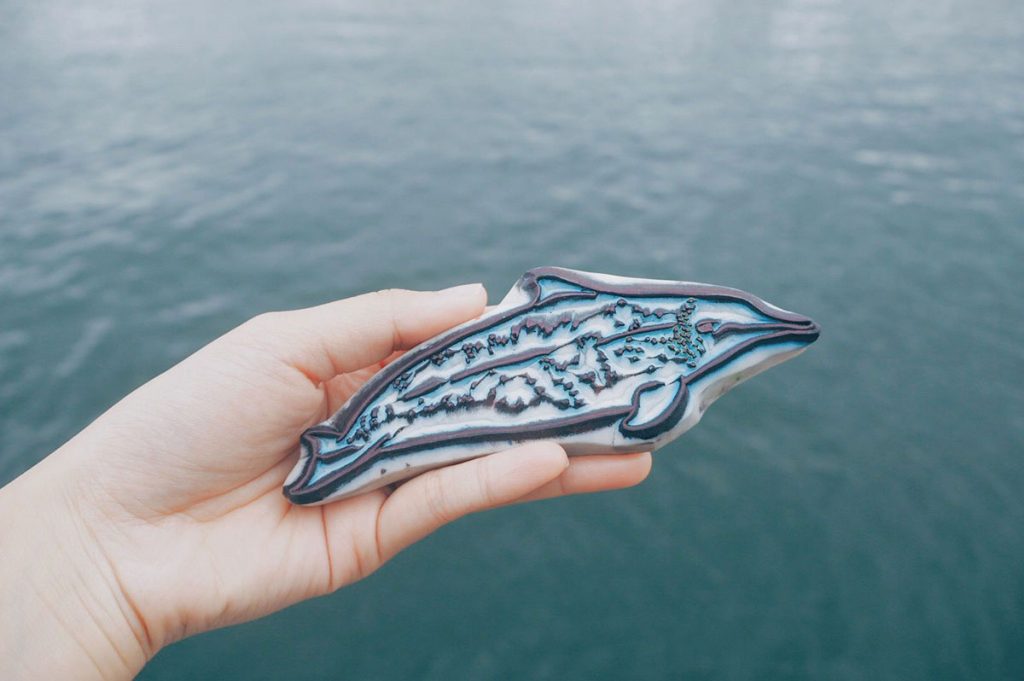 這個景象,不是在外國,而是 Emma 在香港帶賞豚團時目睹過的景象。「其實香港也有不少海豚『原居民』,還常常出沒,一年四季都會見到牠們身影。」曾在海洋公園任職海洋生物訓練員的 Emma 對每種海豚如數家珍,什麼性格、什麼樣貌,語氣中盡帶著溺愛孩子般的溫柔。愛海洋生物愛得紋在身上,落下永生印記;甚至不惜花數年時間,手製鯨豚印章圖鑒,都只是為了讓更多人認識那些住在深邃海洋中的可愛生物。