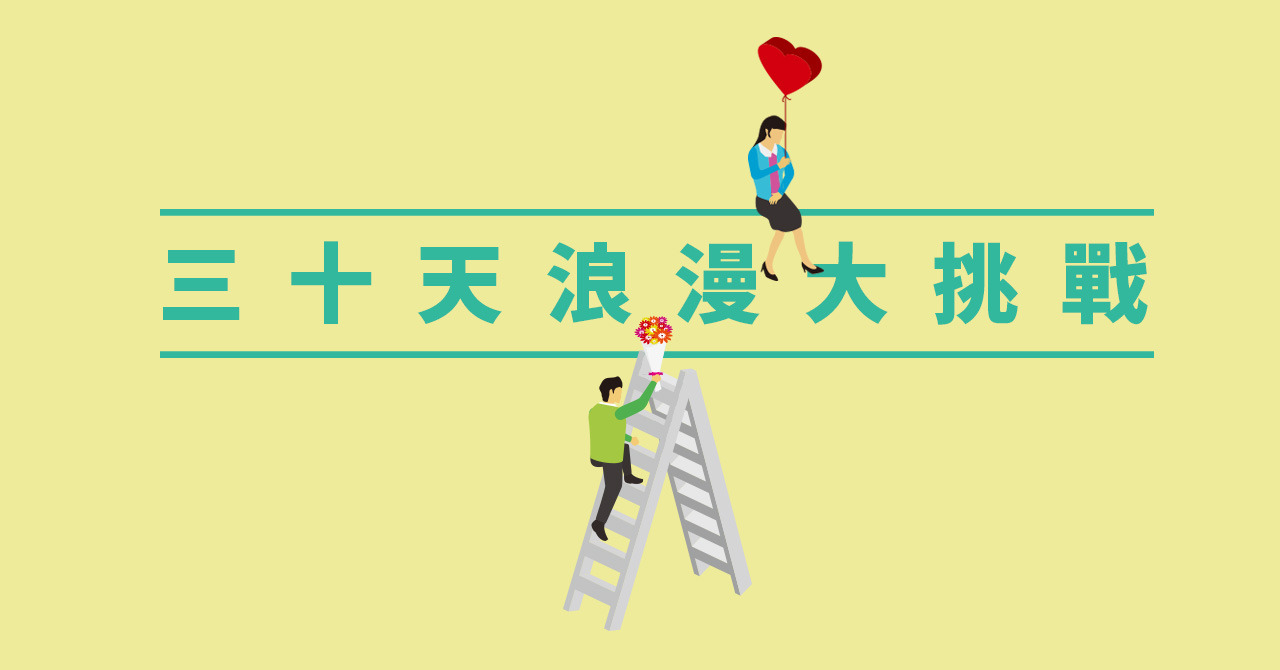 有誰不愛一點浪漫。那管是一起十年,二十年,或五十年。營造驚喜或許需要絞盡腦汁,但浪漫這回事,卻並不如想像中花氣力。事實上,都是些生活上的小舉動,說出來也許微不足道,但浪漫的人,自會懂得欣賞那微小卻珍貴的心意。研究說養成一種習慣只需21天,外國發起了一個「30-Day Relationship Challenge」,30天,每天一個簡單小動作,教你將浪漫變成習慣。如果做不到,你無資格話自己浪漫!