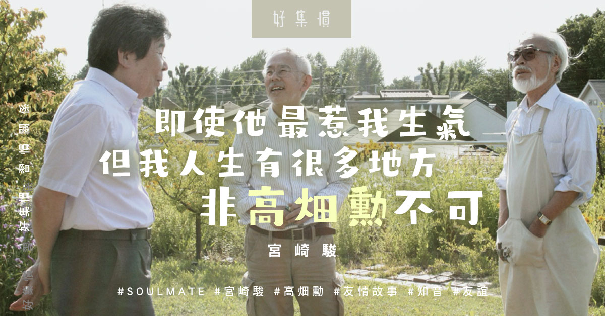 古希臘哲學家亞里士多德認為:「友誼是人生中最不可或缺的必需品之一。」在時間的限制下,人不可能同時滿足多段友情,所以需要在關係中作出取捨,從中選出主要友誼,並好好守護,我們必定獲益良多。宮崎駿在高畑勳的告別式說:「在過去那段時光,我們是如此努力地活着。我永遠也不會忘記在55年前那個下雨的巴士站,來找我說話的你。」到最後,讓宮崎駿最深刻的畫面是這段友情最初的對話,也感恩有這次對話,才得以開展這難能可貴的友情。