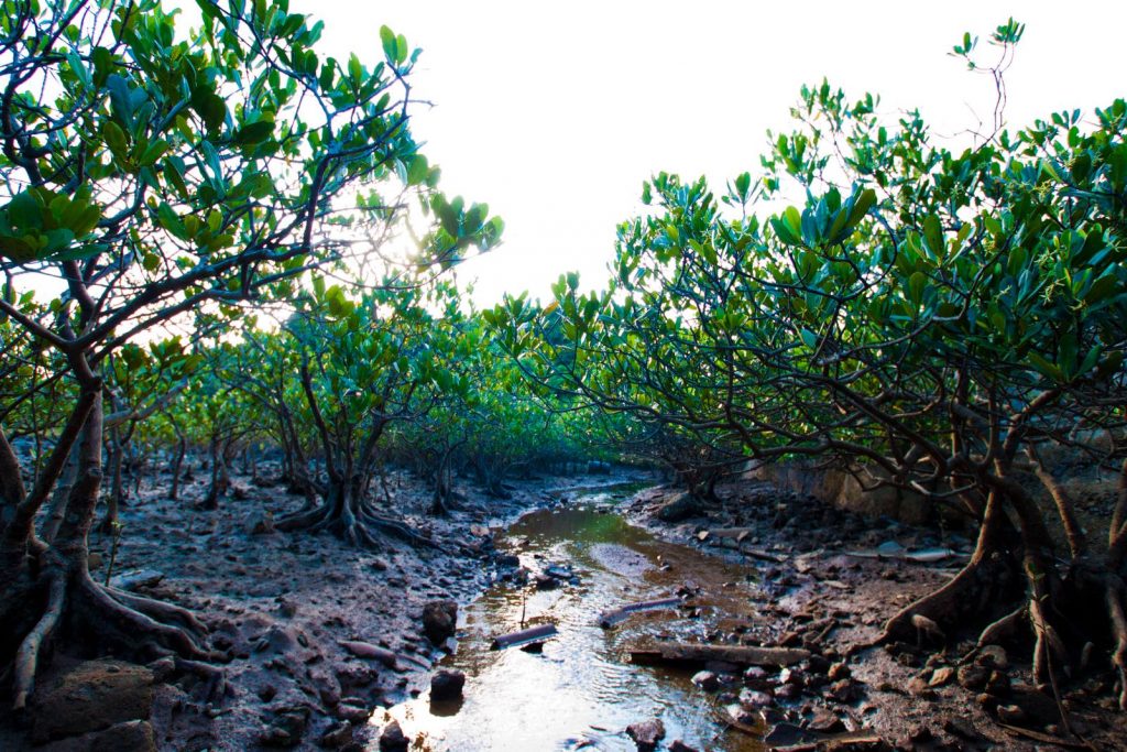 沿著石屎路繞一圈,來到小島的另一邊,眼前出現一片紅樹林和玉帶橋。石橋看似只是通往滘西洲的私人高球場的通道。但它其實建於1950年代,經歷三代的修葺,方便島民前往滘西洲開拓資源和婦女耕作。在村民心目中,它不僅是便利生活的通道,也是客家婦女刻苦耐勞的象徵。玉帶橋上,再也看不見辛勞的回憶,但看見一片被紅樹林覆蓋的淺灘。幸運的話,你或許會看到六個香港獨有的品種生物。