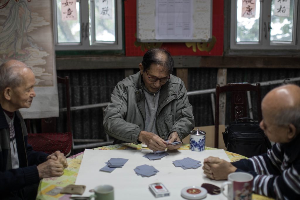 上水後,泳客會在泳棚小屋內聊天聯誼,今天他們玩紙牌。
