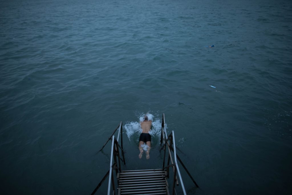 他們都是冬泳愛好者,都有清晨游泳的習慣,大部分是西環街坊,亦有泳客說有住在九龍的泳友會專程搭車過來游泳。「這裡有20多個會員吧」,一位泳客告訴我,「越來越少了,有些上了天國,有些因為太老走路不方便來不了。」沒有新會員加入,泳棚的未來成為疑問。