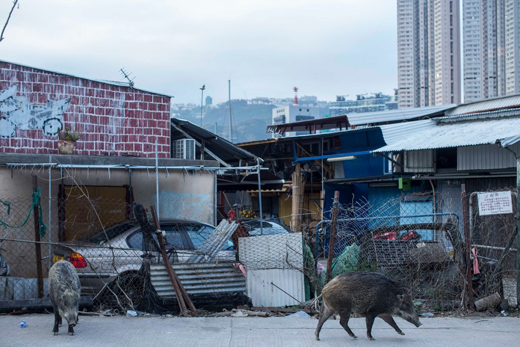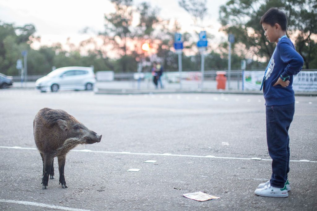 有時牠們在路邊徐徐踱步,甚至橫過馬路,和車輛擦身而過,有時在村屋附近的垃圾筒附近覓食,撕開白色膠袋,在地上翻出食物。數隻大野豬的尾巴後面常常還帶著一隊小豬。過去數年,這樣突兀的場景在香港愈發常見,和在大年初三走入梅窩超市的野牛一樣,給香港留下了無法抹滅的畫面,而自去年年末開始,衝突感愈來愈強。
