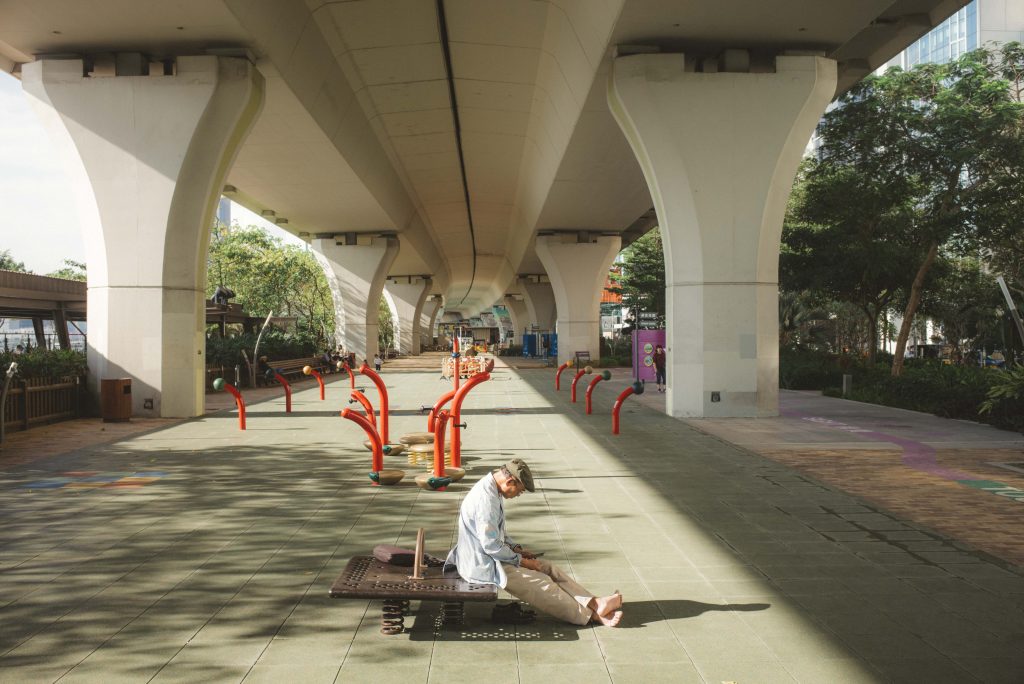 屯門后海灣幹線天橋底下,一萬平方米的休憩空間。