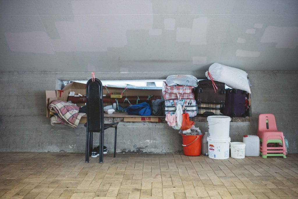 沙田城門河河邊的天橋底擺放著無家者生活的痕跡。