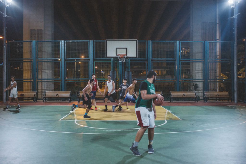 大圍銅鑼灣道二分一籃球場位於行山天橋的橋底下。