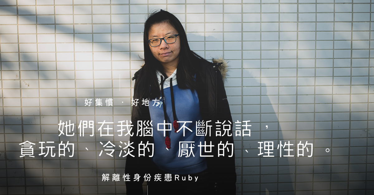 她大約從15歲開始出現幻聽。有的聲音嘻嘻哈哈和她說笑,有的聲音叫她去自尋短見。起初,家人以為她鬼上身,經多次醫生診斷,才最終確診為解離性身份疾患——Ruby在原始人格之外還有四個不同人格,四個人格有獨立的觀點、情緒,甚至會同一時間在她腦中「開會傾計」。
