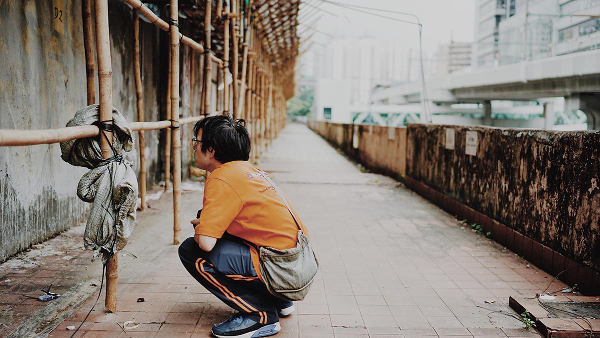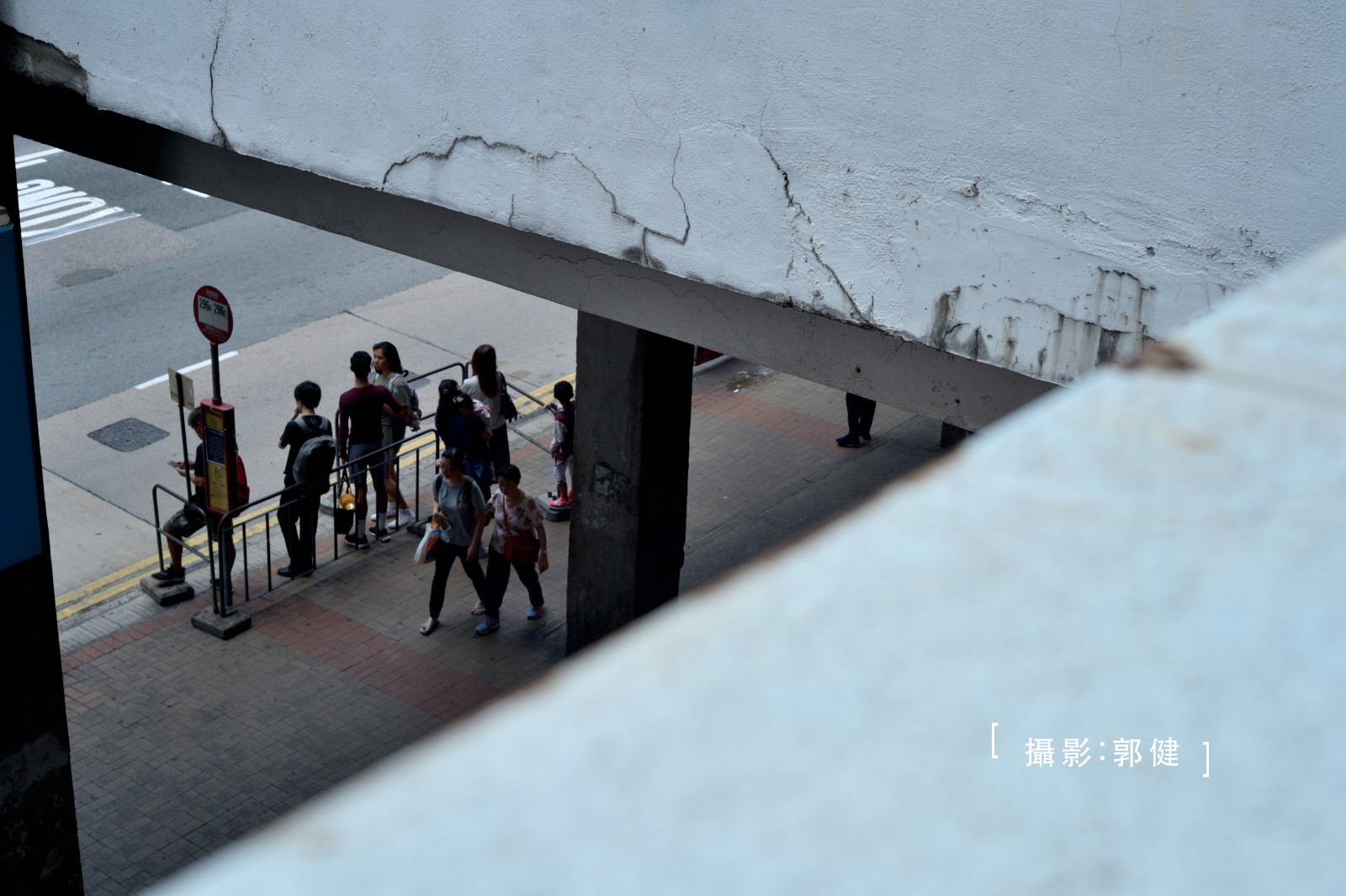 他轉身走到竹棚那邊觀察良久,「你在看什麽呢?」「這裏有一個三角形啊。」從他的角度看到兩條建築物的線條相匯,兩條線的中間,剛好就是巴士站,有正在等車的人,構圖很美,這不就是你與我平日的模樣嗎?「以前我做送貨,時間比較彈性,上班也會帶著相機,放工便會在數個站前下車,慢慢散步,慢慢拍照。」