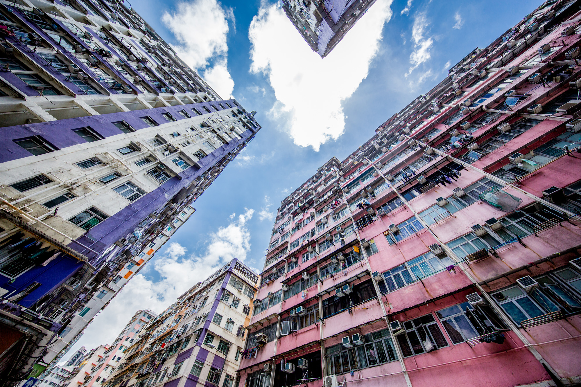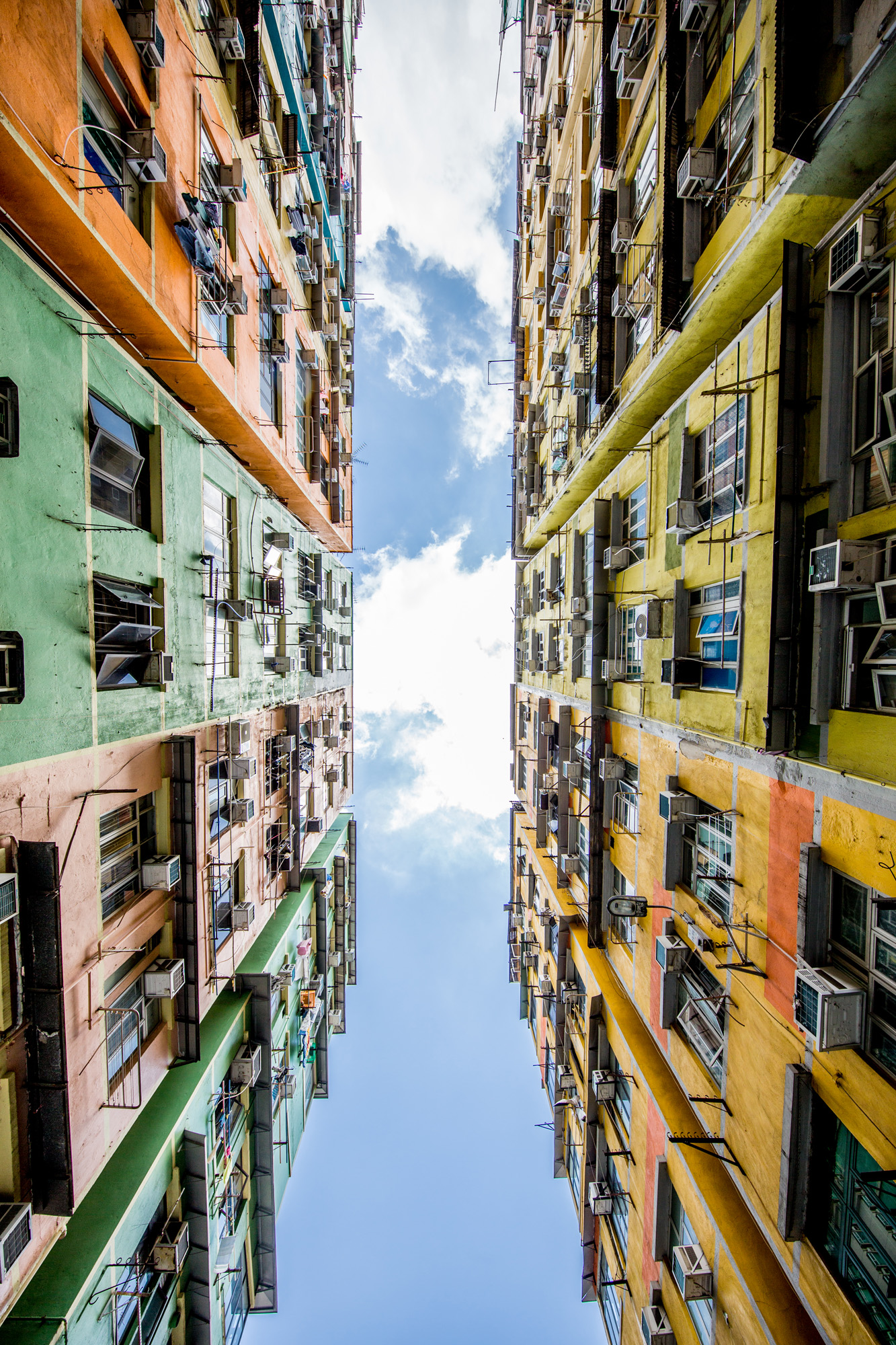以不同角度拍攝繽紛的大廈外牆,帶來截然不同的視覺效果。