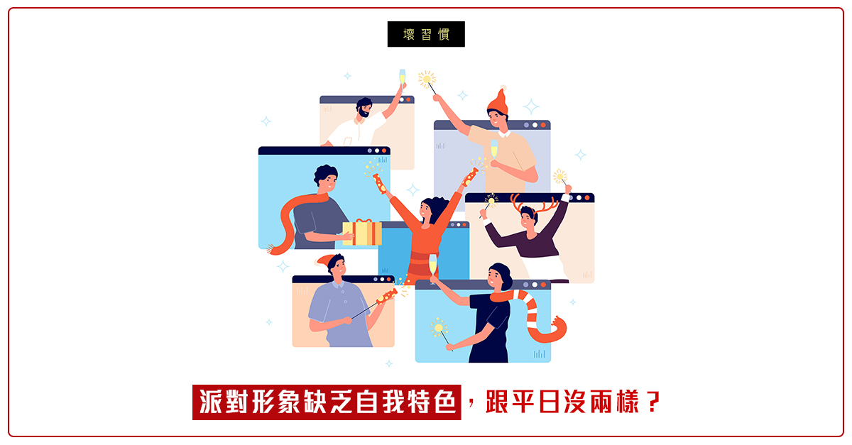 派對月份臨近,在這個不平凡的2020年,即使我們不能時刻相聚,透過科技也能跟親朋好友來個virtual party!有沒有人跟筆者一樣,從沒有為party 特別打扮過,隨便在平日的衣飾戴上聖誕帽就怱忙赴約,穿上一件紅衣已算是「誠意」的表現?是時候為這個新的視像派對形式,為自己換上一個新形象cheer up 一下!