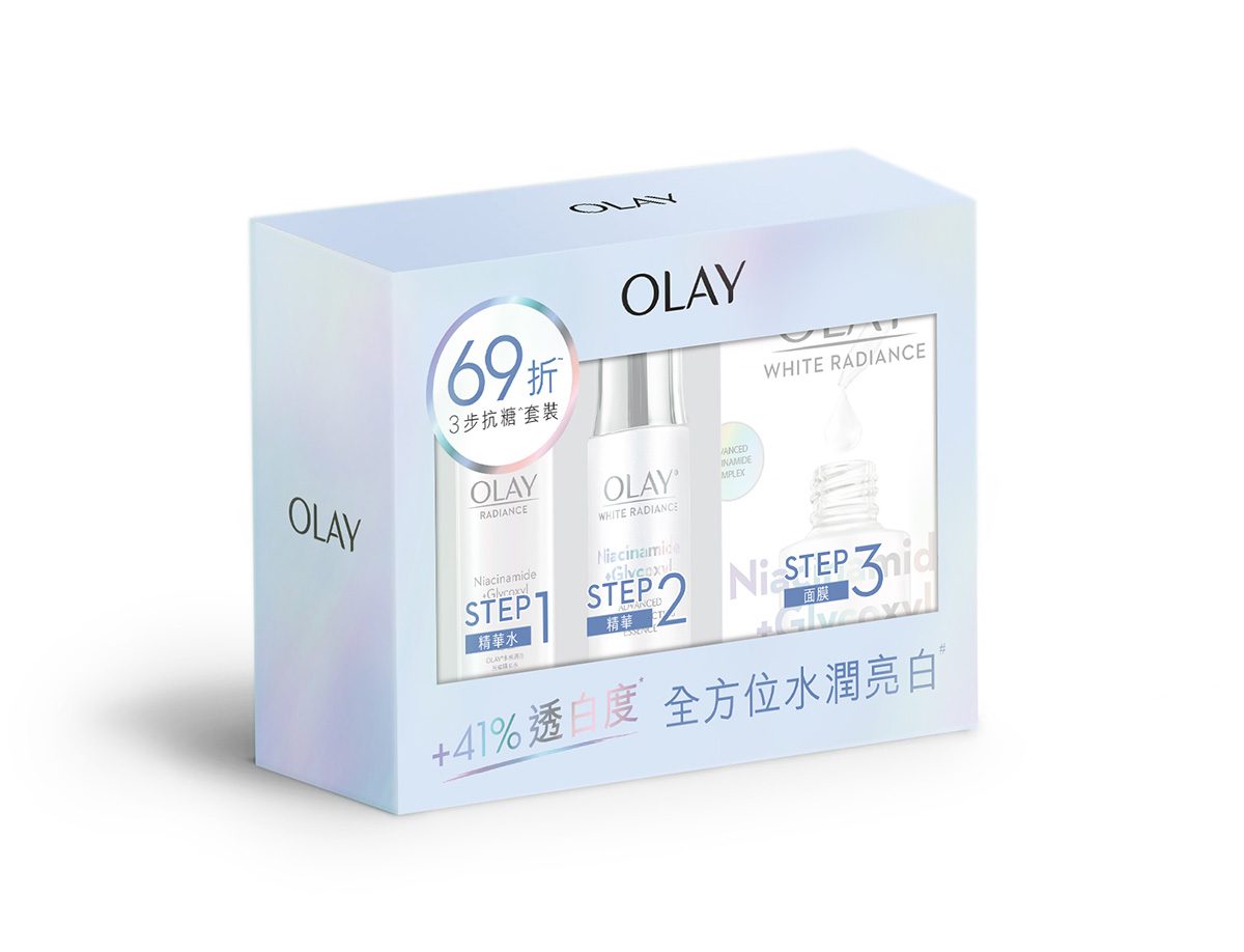 - 立即選購OLAY 3步抗糖套裝($339),內有全新抗糖水45ml、皇牌抗糖精華30ml、升級抗糖面膜2片,優惠高達69折!