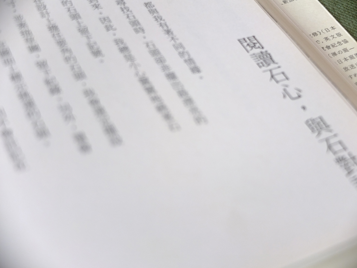最後,不如回答你:「石頭會告訴我」的意義。在禪的思考,石不會改變,日本庭園裏若石頭定位之後,不隨什麼而改變,那麼,在放置石頭時便要觀察石的臉孔和表情,一塊石頭就能左右空間印象,只要稍微移動,空間也會變化出不同個性;到最後,原來是一個人善良的心境,只有用心去感受,才能領略。
