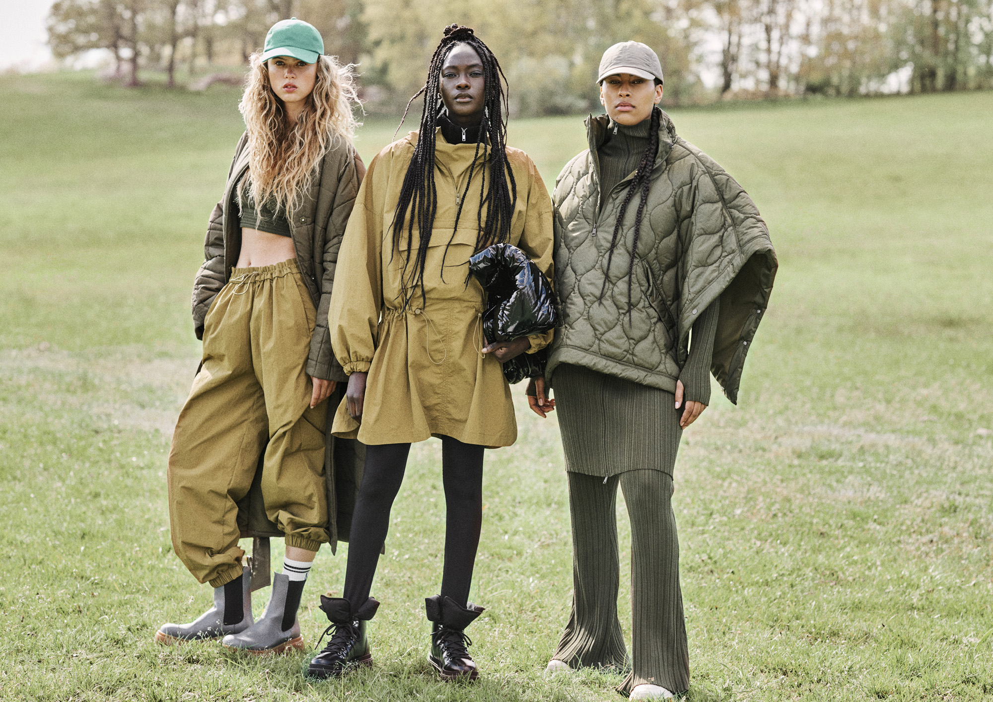 H&M 今年的秋冬系列亦大玩Gorpcore風格,運用精妙剪裁及時尚設計,將戶外運動休閒風、多重功能與科技性巧妙結合,配以森林綠及芥末黃等流行大地色彩,再加上防水面料、大口袋等功能性細節,打造實用與型格兼備的都市時尚。