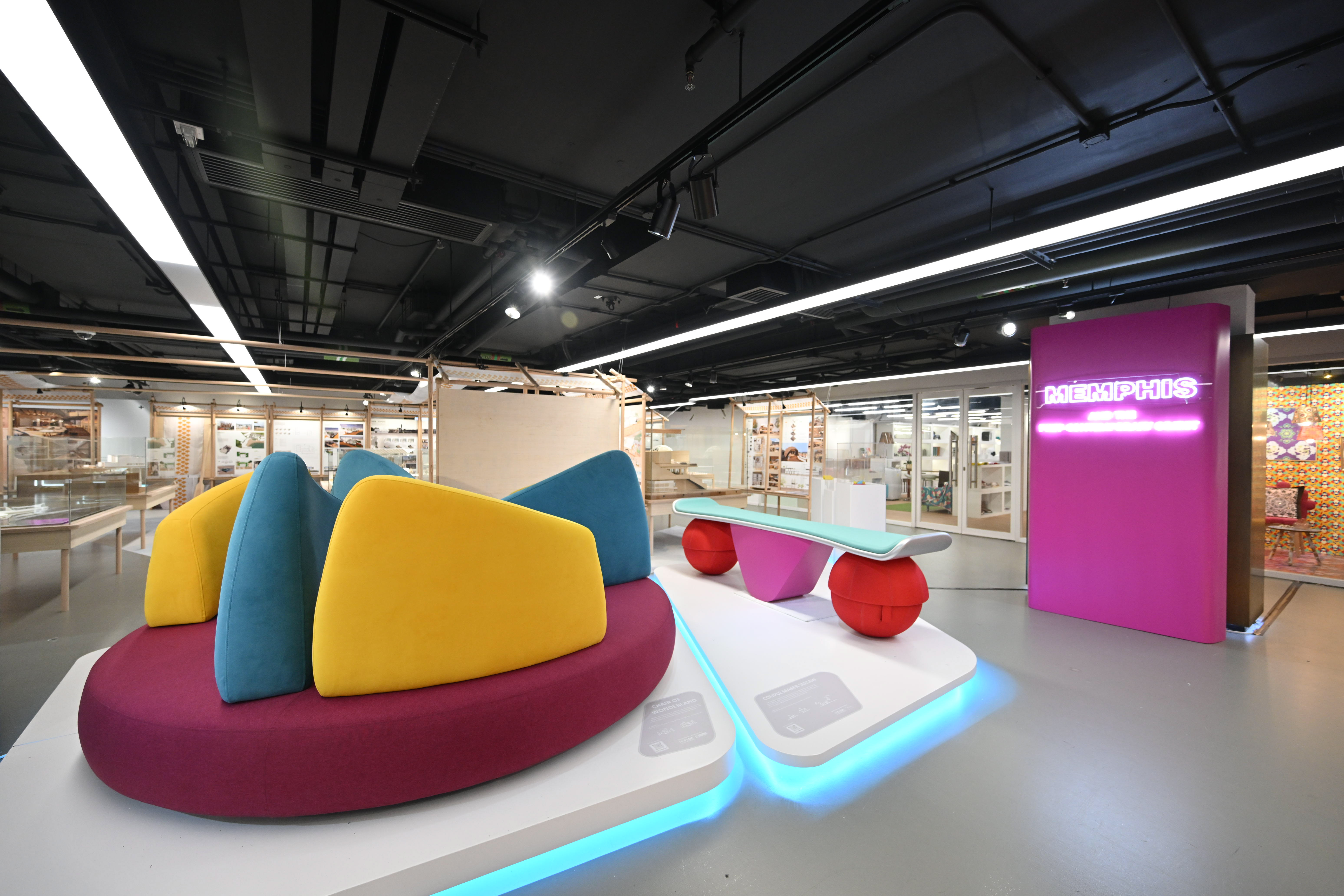 而在這個年度設計展當中,就有一個由意大利駐港文化處、傢俬裝飾廠商總會、孟菲斯設計集團及Novalis Art Design共同合作的項目:「資優設計工作室:孟菲斯設計及後當代物件」,並由HKDI建築、室內及產品設計學系畢業生組成5個團隊,以符合現今數碼網絡美學的設計,精心重塑80年代意大利具有大膽色彩及高調形狀的孟菲斯風格的家俱系列。